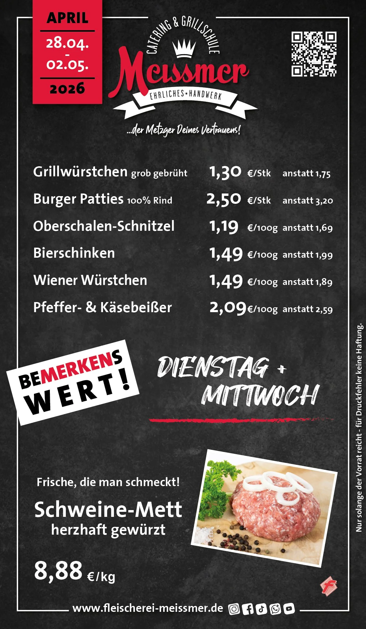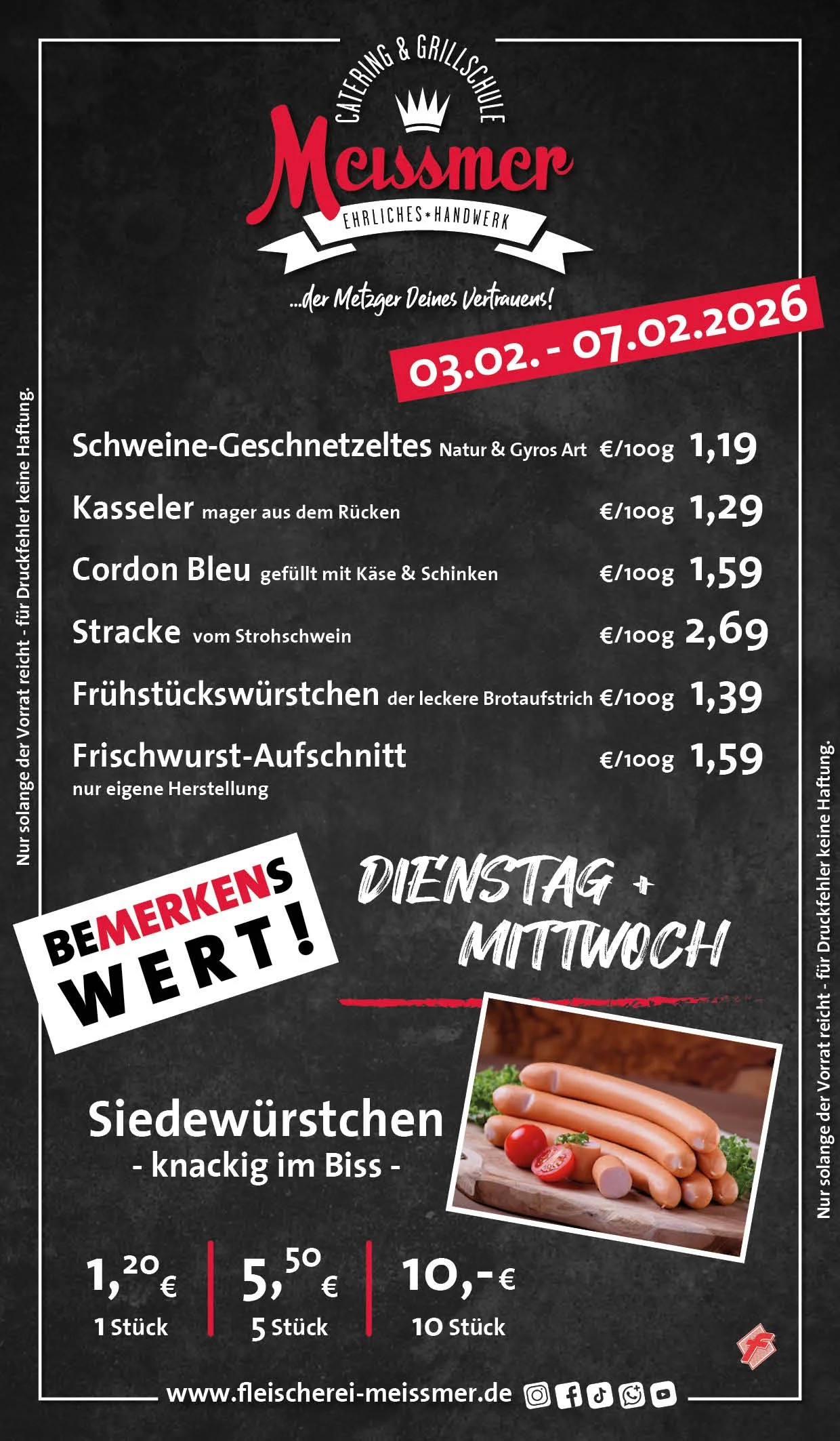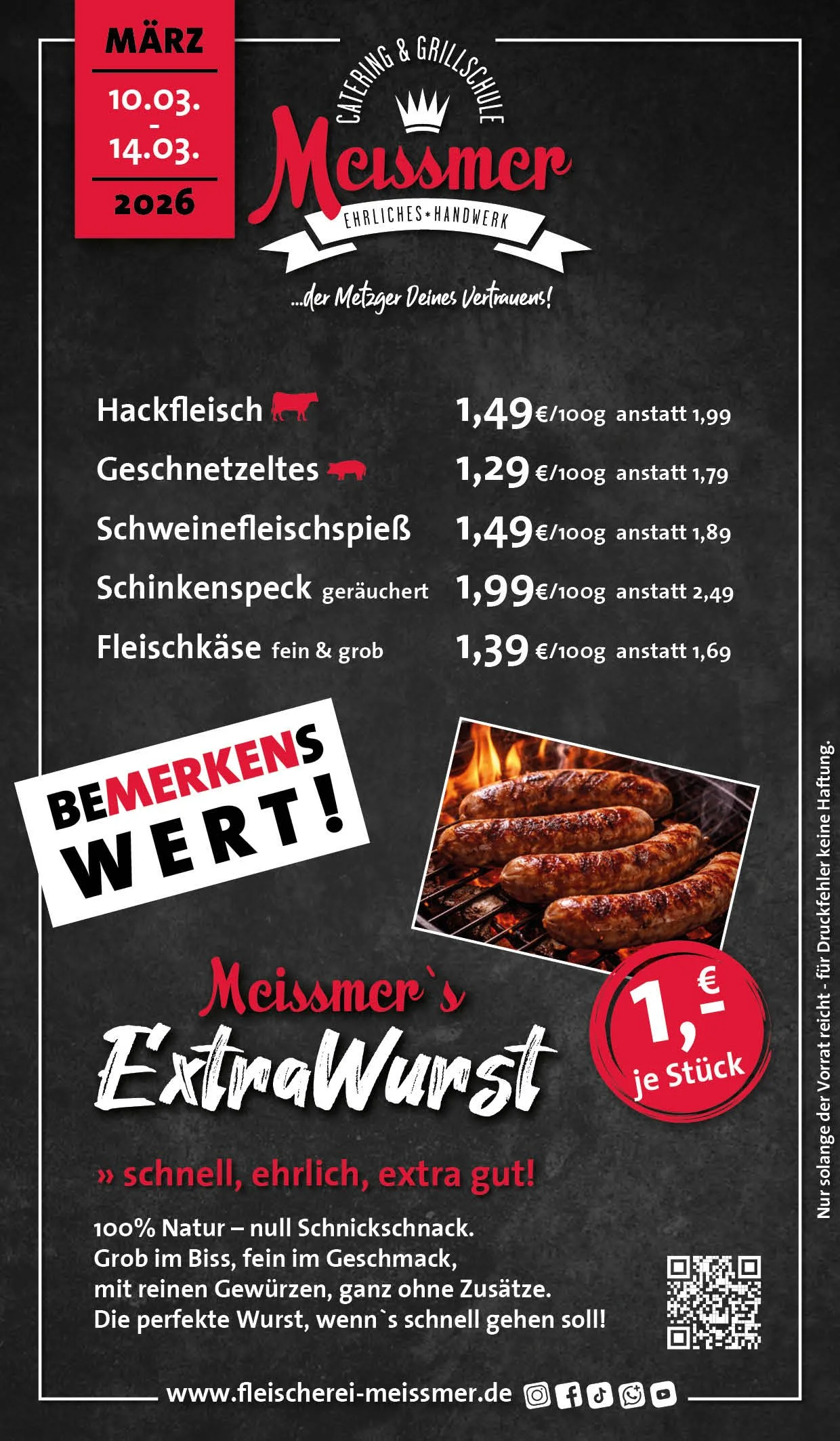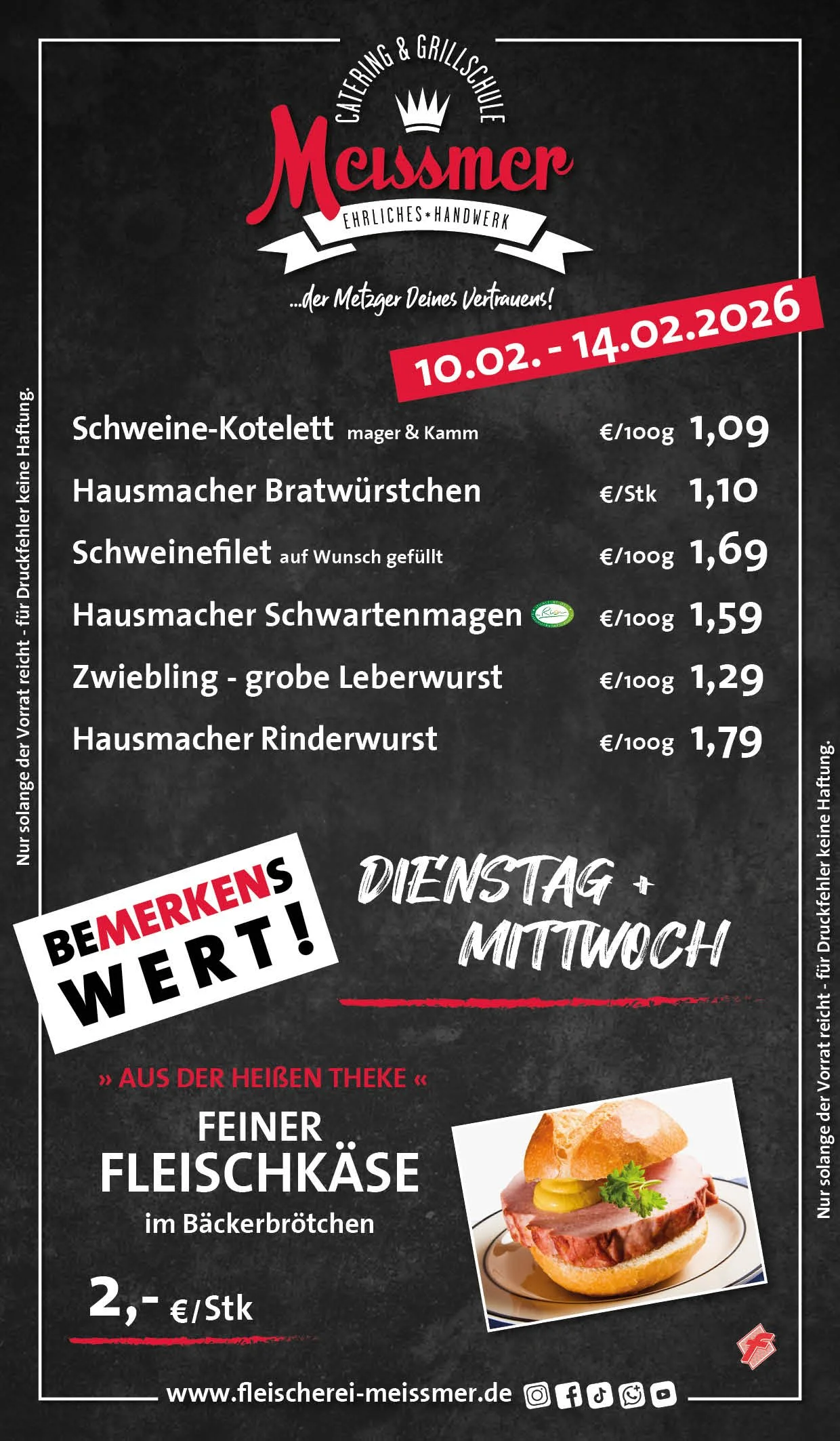 Bei uns erhalten Sie tagesfrische Produkte und Gerichte aus schmackhaftem, kontrolliertem Fleisch aus der Heimat. Der Name Meissmer steht für verantwortungsvolles Wirtschaften und Handeln, für Nachhaltigkeit in unserer schönen Region.