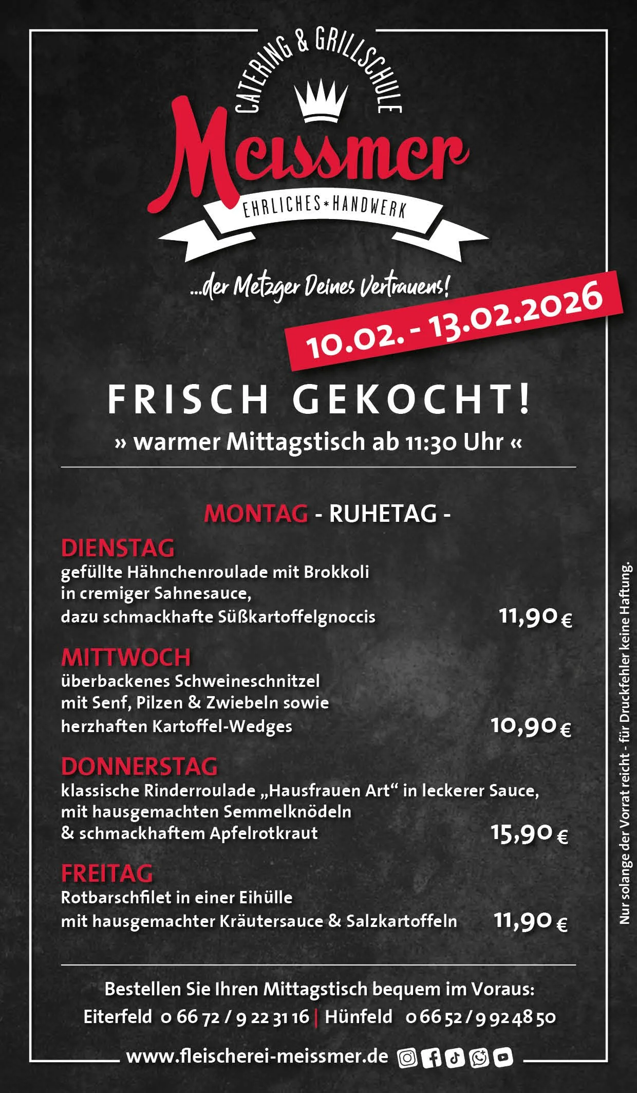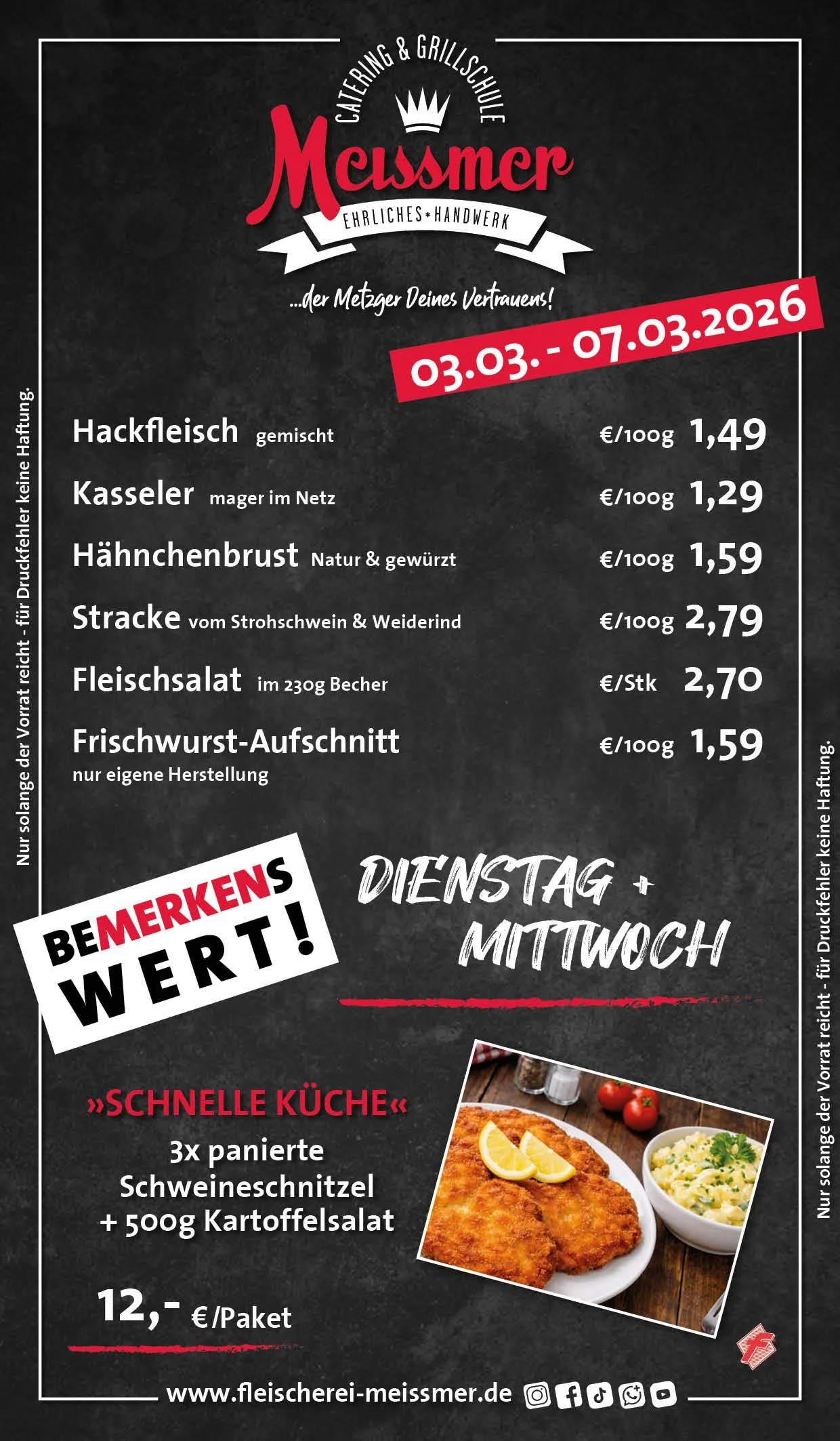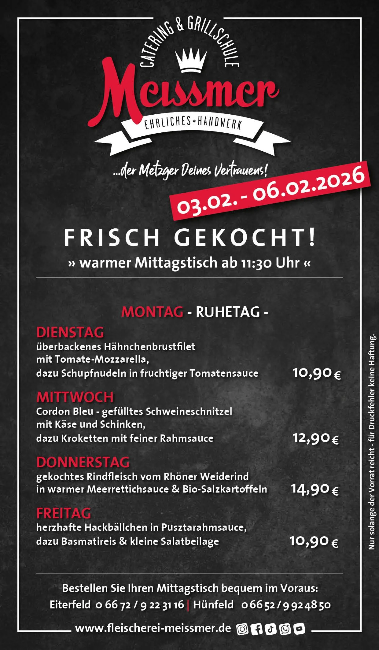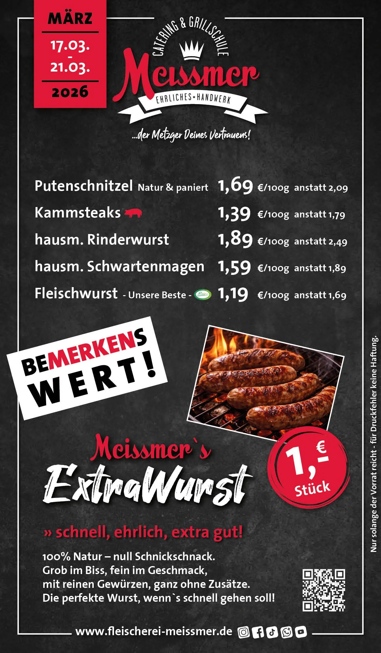 Bei uns erhalten Sie tagesfrische Produkte und Gerichte aus schmackhaftem, kontrolliertem Fleisch aus der Heimat. Der Name Meissmer steht für verantwortungsvolles Wirtschaften und Handeln, für Nachhaltigkeit in unserer schönen Region.