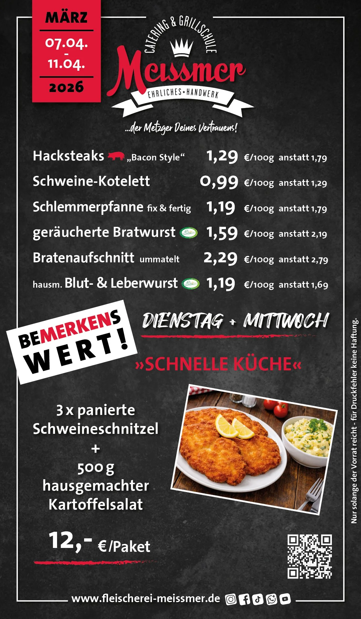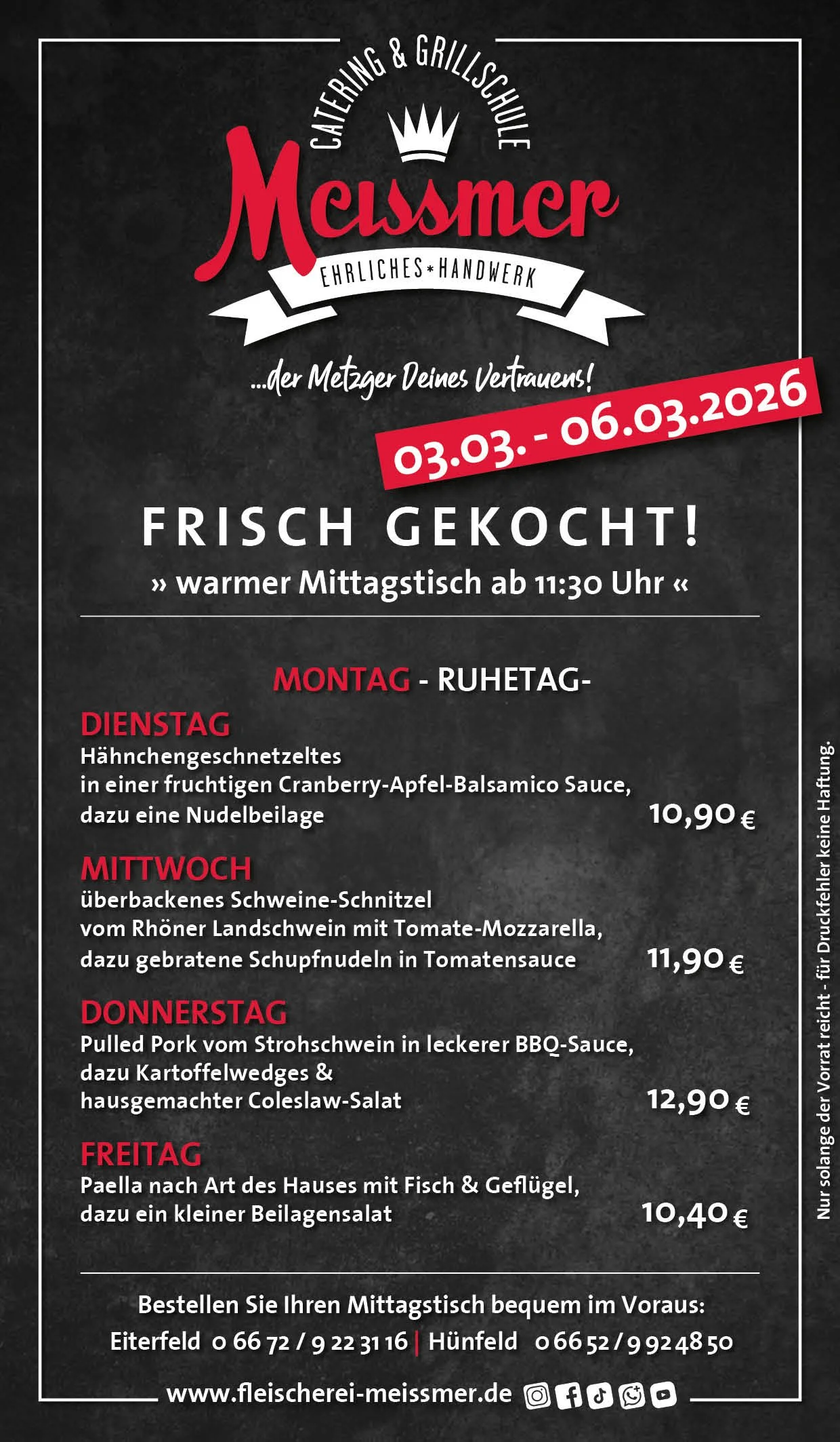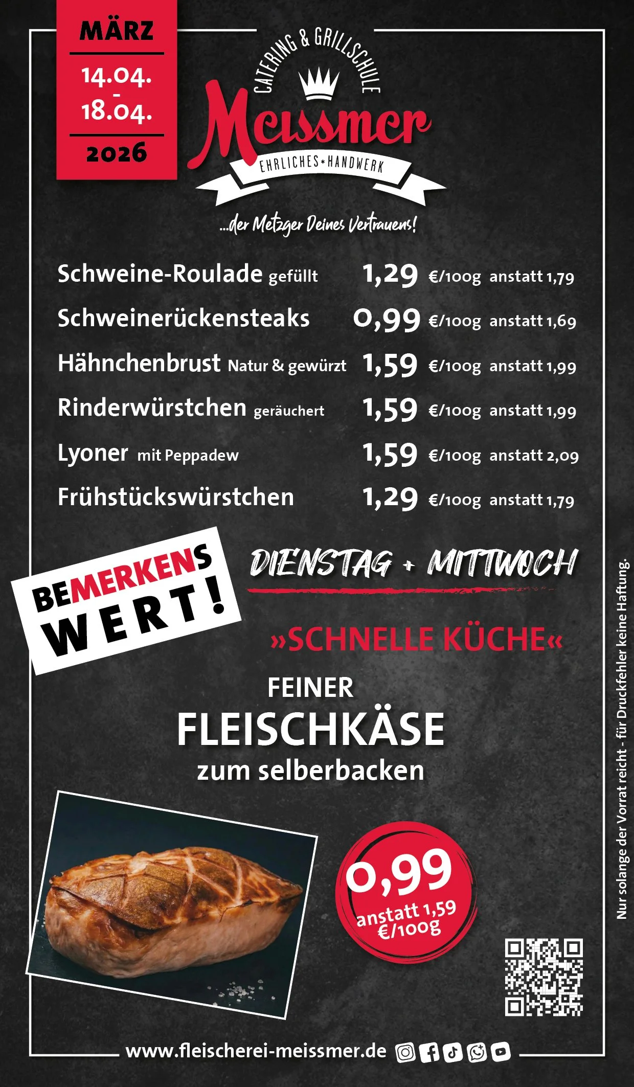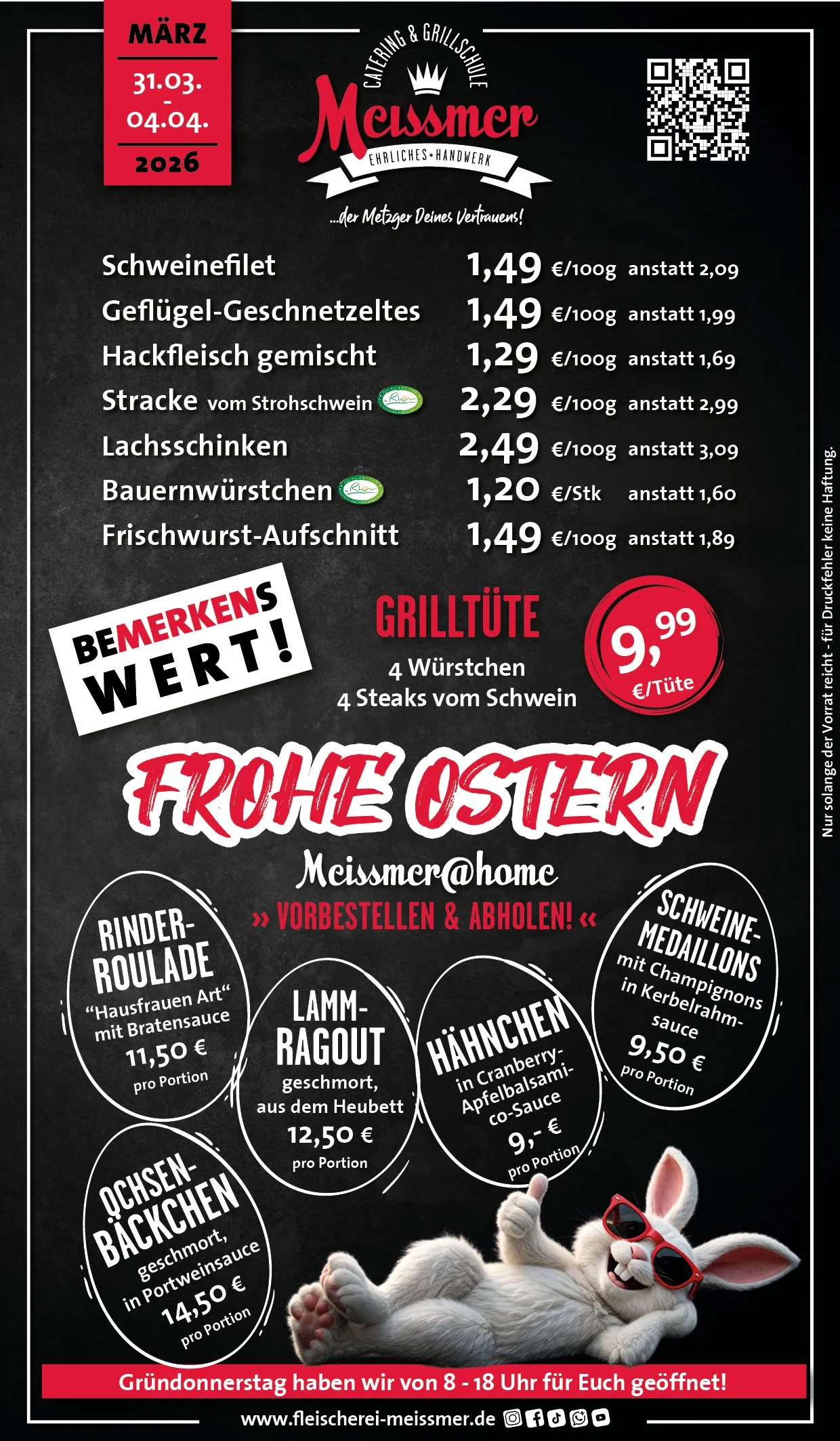 Bei uns erhalten Sie tagesfrische Produkte und Gerichte aus schmackhaftem, kontrolliertem Fleisch aus der Heimat. Der Name Meissmer steht für verantwortungsvolles Wirtschaften und Handeln, für Nachhaltigkeit in unserer schönen Region.