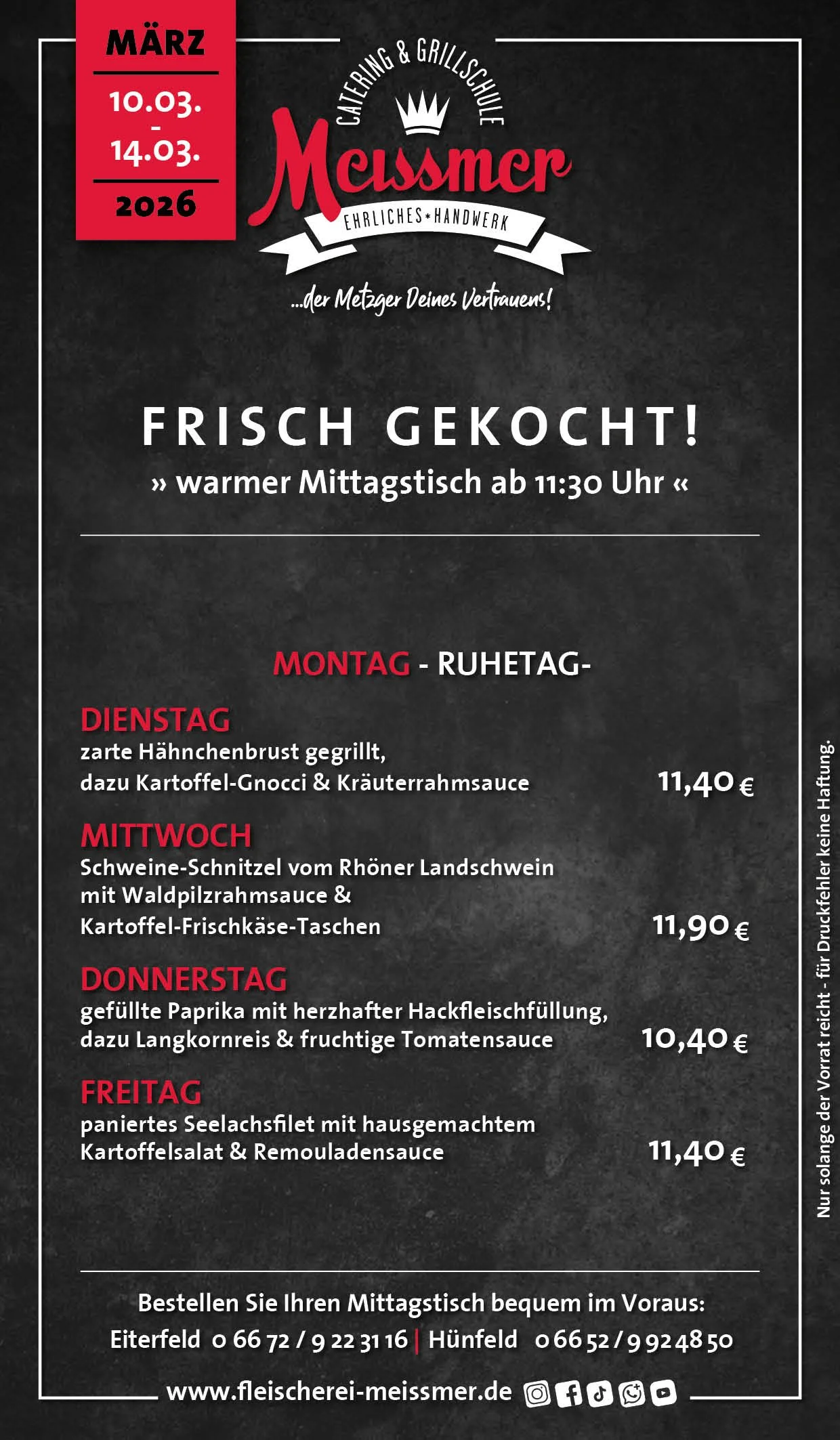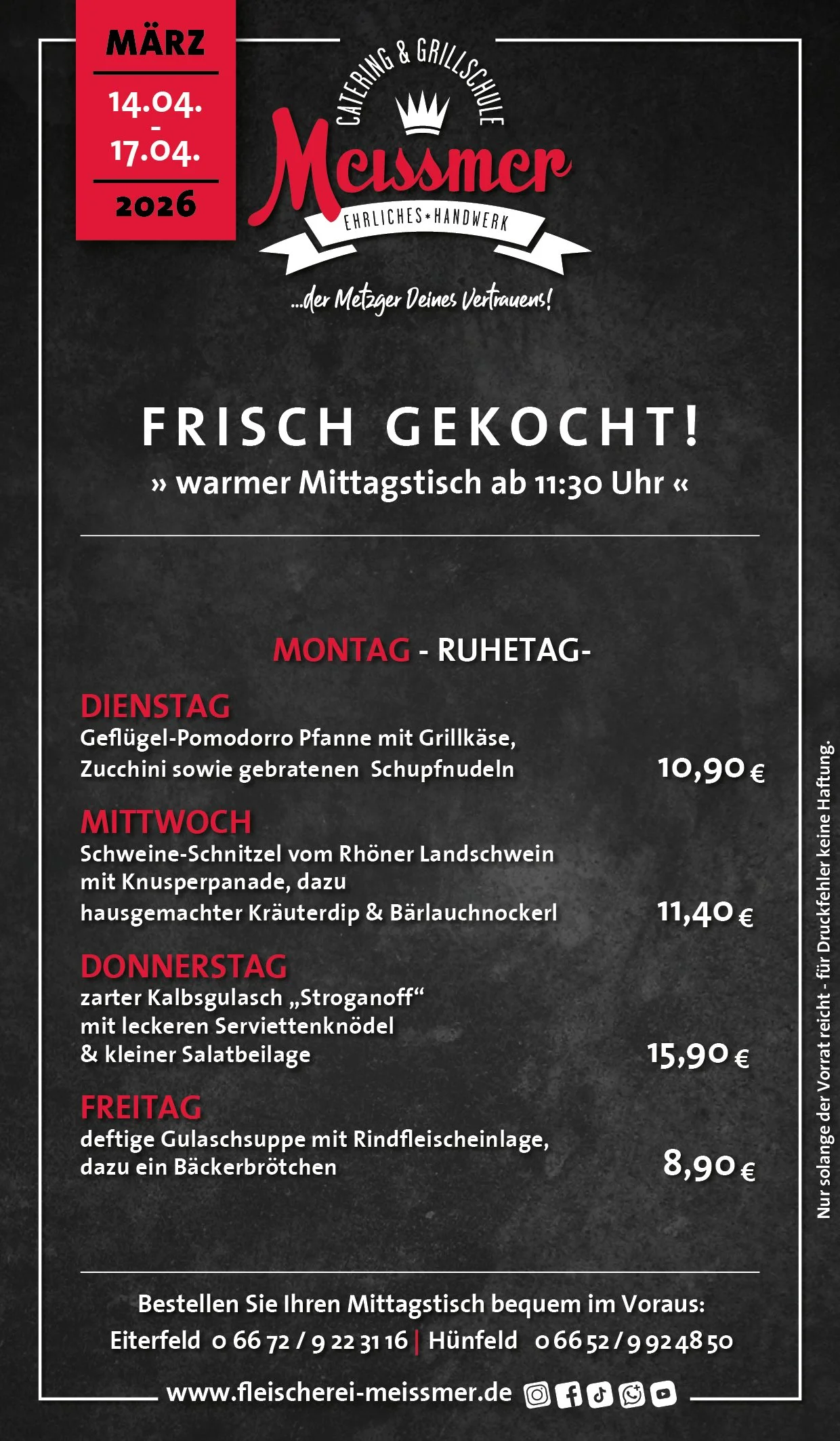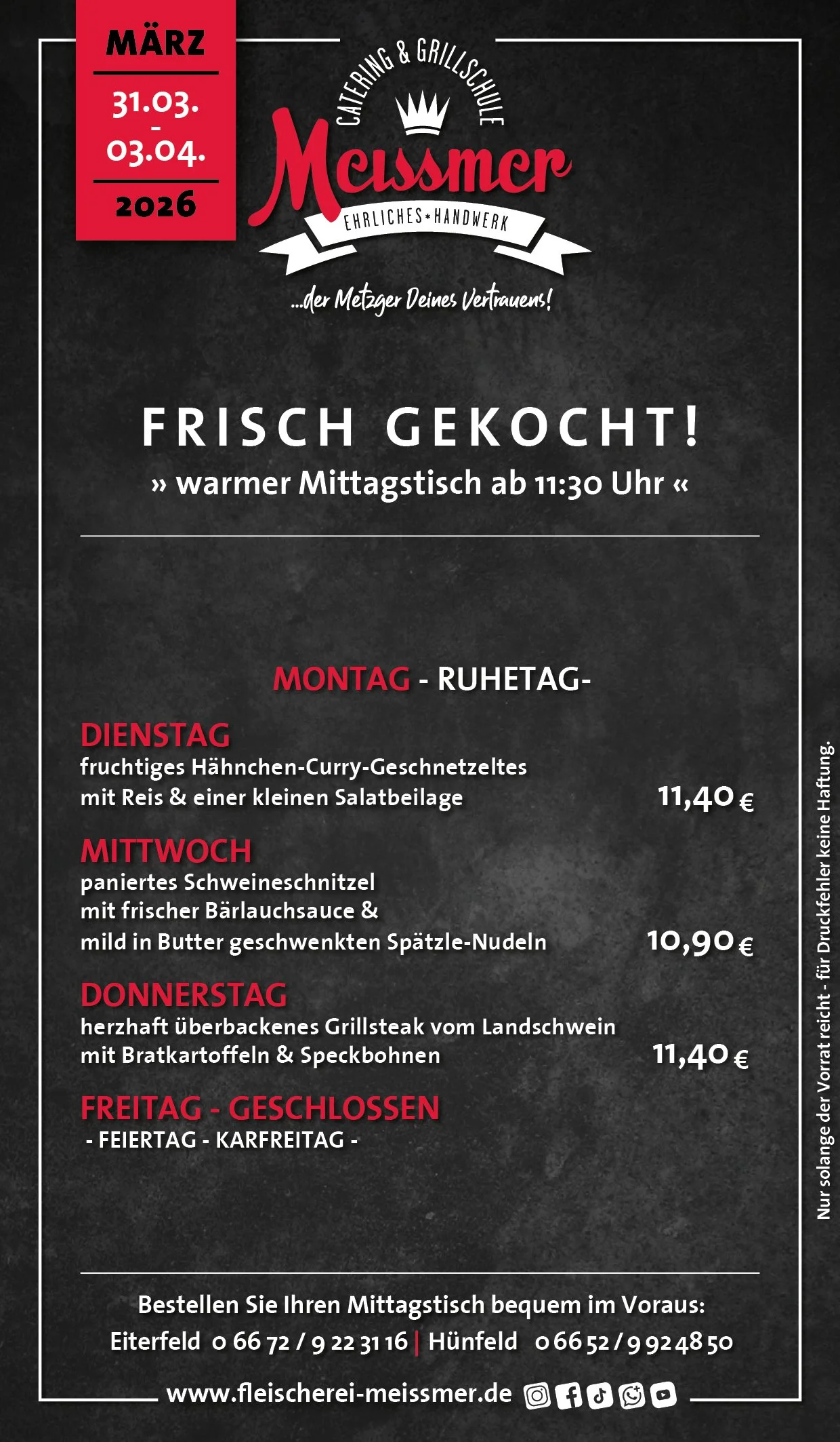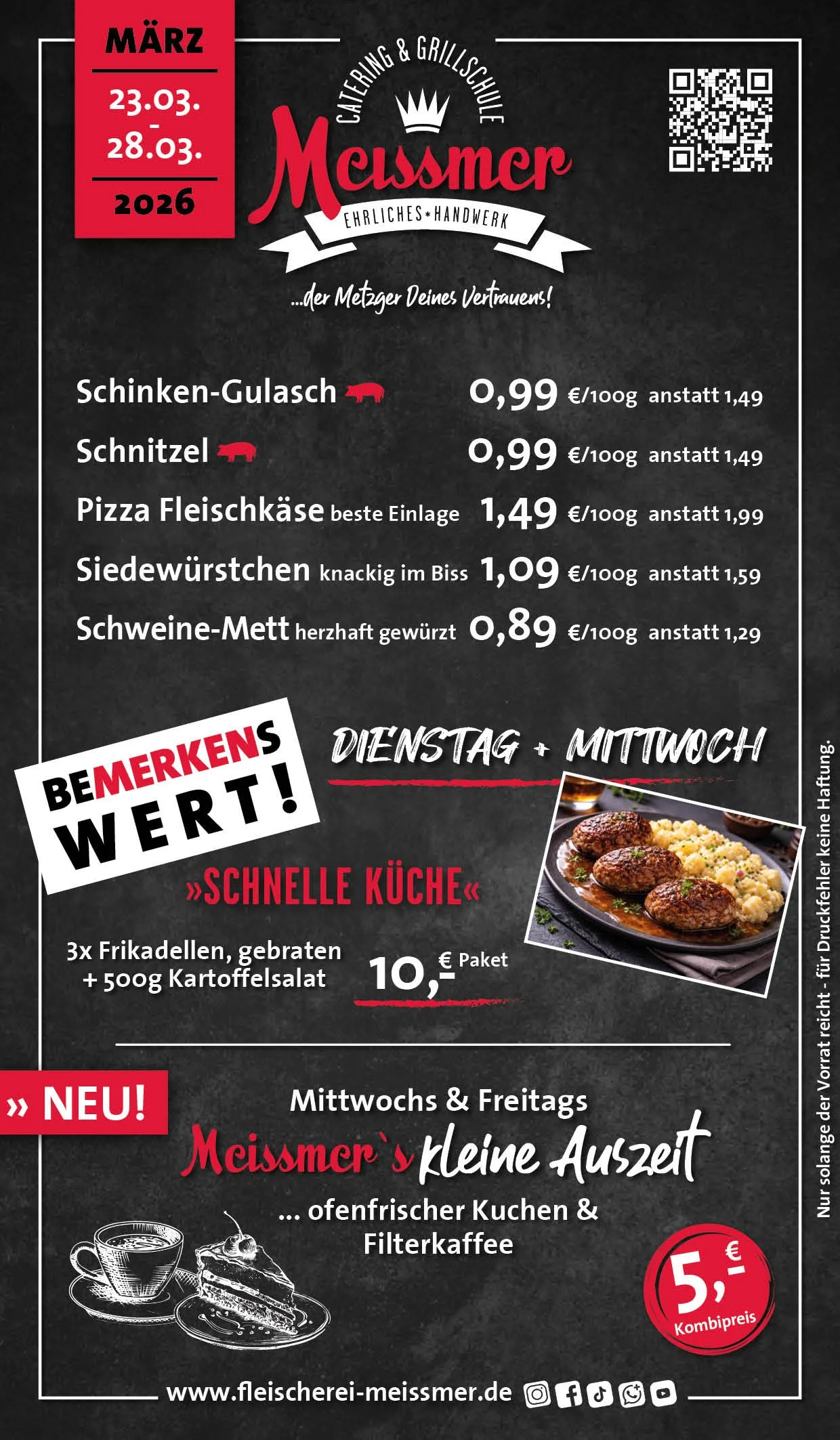 Bei uns erhalten Sie tagesfrische Produkte und Gerichte aus schmackhaftem, kontrolliertem Fleisch aus der Heimat. Der Name Meissmer steht für verantwortungsvolles Wirtschaften und Handeln, für Nachhaltigkeit in unserer schönen Region.